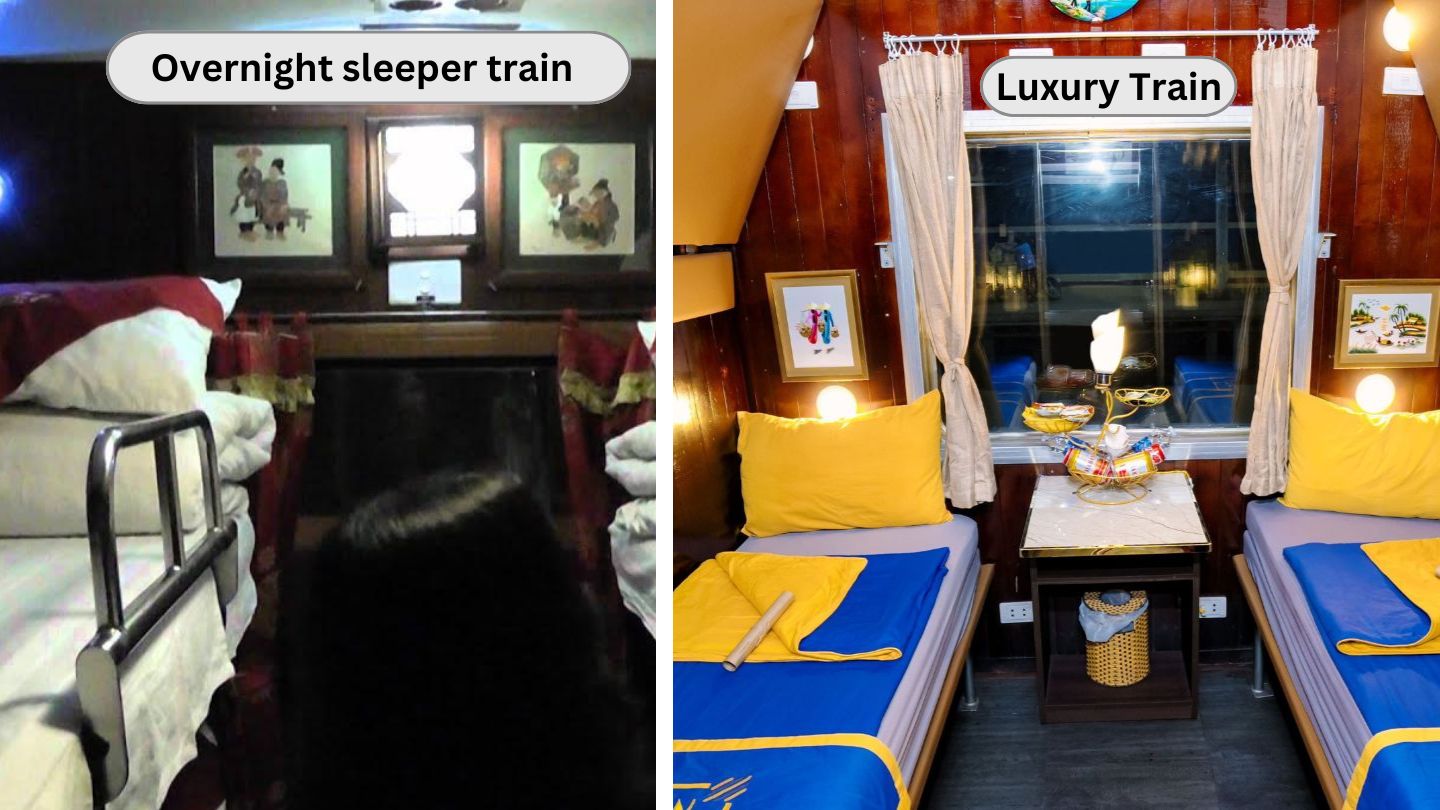 - Overnight sleeper train: This train is a budget-friendly option that provides basic amenities like air conditioning, bedding, and clean toilets, ensuring a comfortable but simple experience. You can choose between soft seats or sleeping berths in either a shared or private cabin. This setup is ideal for travelers who don’t mind a straightforward journey and don’t need a lot of frills.Â