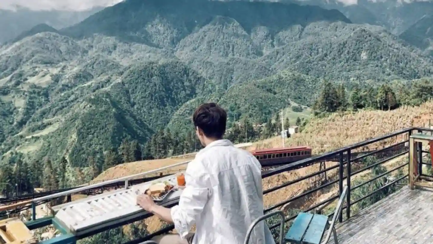 Viettrekking has both indoor and outdoor seating, but the most popular spots are out on the balcony facing the mountains. Guests often line up early to get the perfect cloud-and-train shot. It’s definitely an “Instagram-worthy” location!