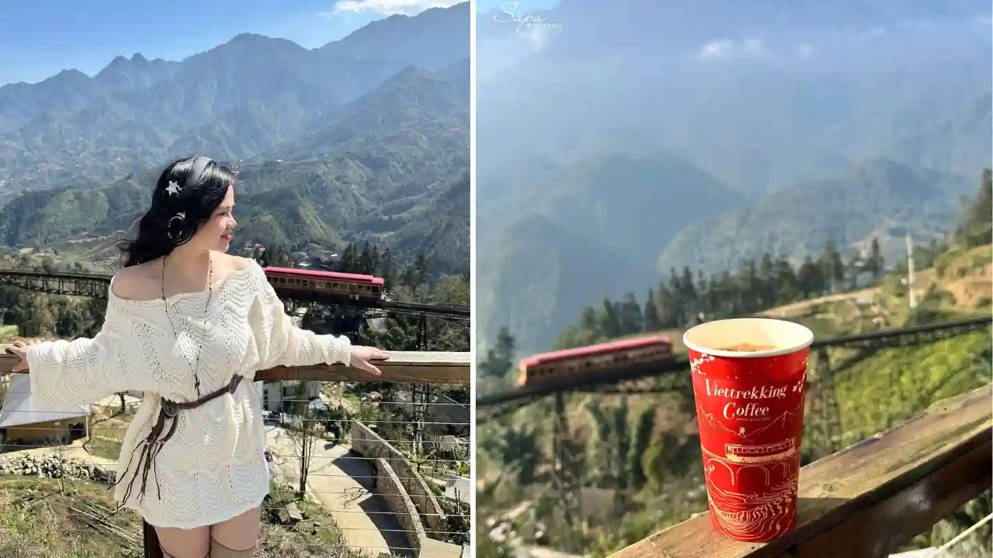 Now picture this: It’s early morning, the air is cool, you’re sipping a hot cappuccino, and clouds are drifting between the mountains. Then, out of nowhere, the train rolls by — slow, peaceful, and almost cinematic. You’re not just grabbing coffee, you’re soaking in a full-on Sapa experience. Cloud hunting and train spotting? Yes, please.