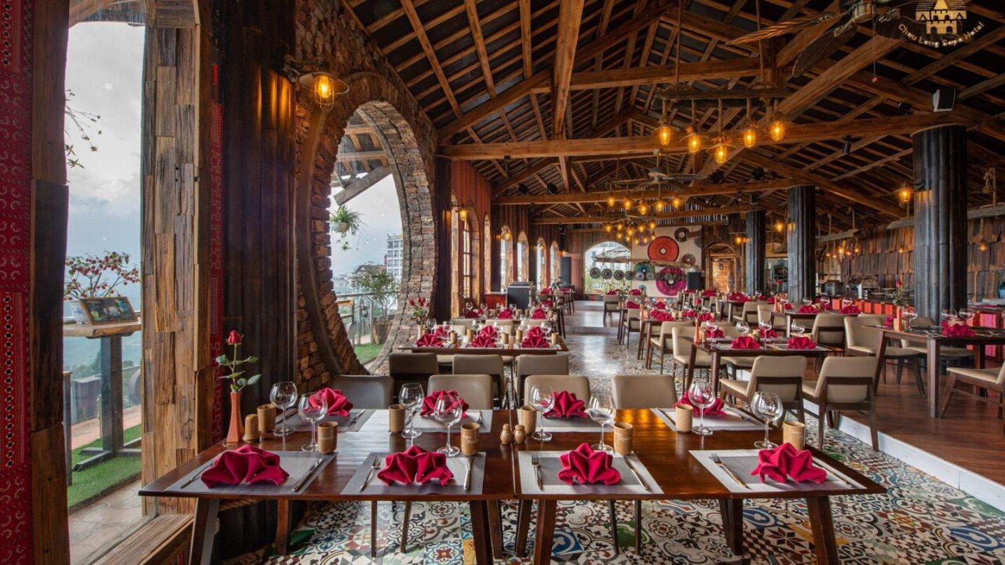 Perched on the 7th floor, Sapa Skyview Bar & Restaurant is where meals meet magic. Because it’s the highest floor, the views are nothing short of breathtaking — mountains rolling endlessly and clouds drifting just within reach. The design mixes Western elegance with Vietnamese charm, offering both indoor coziness and open-air freshness. Every table feels special, whether you’re cloud-watching with coffee or enjoying local and international dishes. With prices from 150,000 to 400,000 VND per dish, it’s more than dining; it’s an experience.