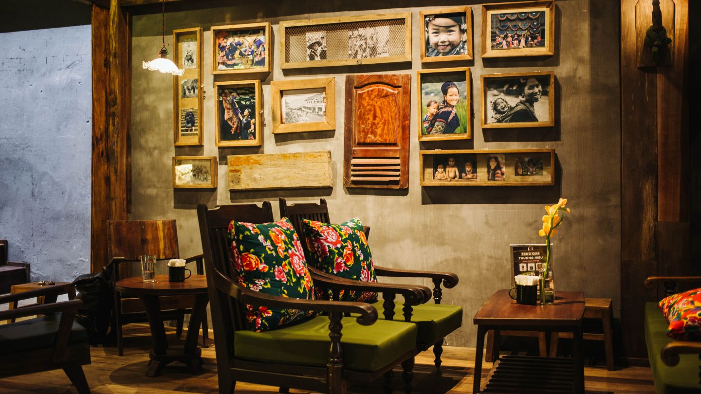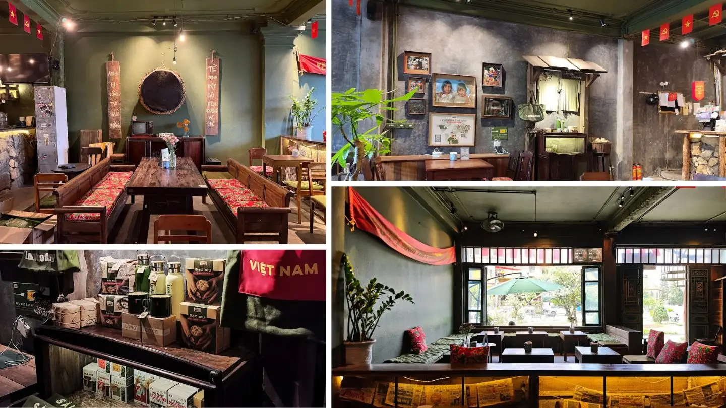 - 🏡 Ambiance: Cozy, rustic-modern interior with wooden furniture, vintage-style décor featuring retro wartime/vintage Vietnam themes, and a strong local café vibe.