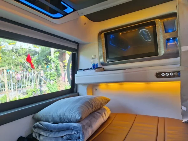 • Comfortable Sleeper Cabins: Our sleeper buses feature soft beds, air conditioning, charging ports, and privacy curtains – ideal for long-distance travel between Sapa and Halong Bay.