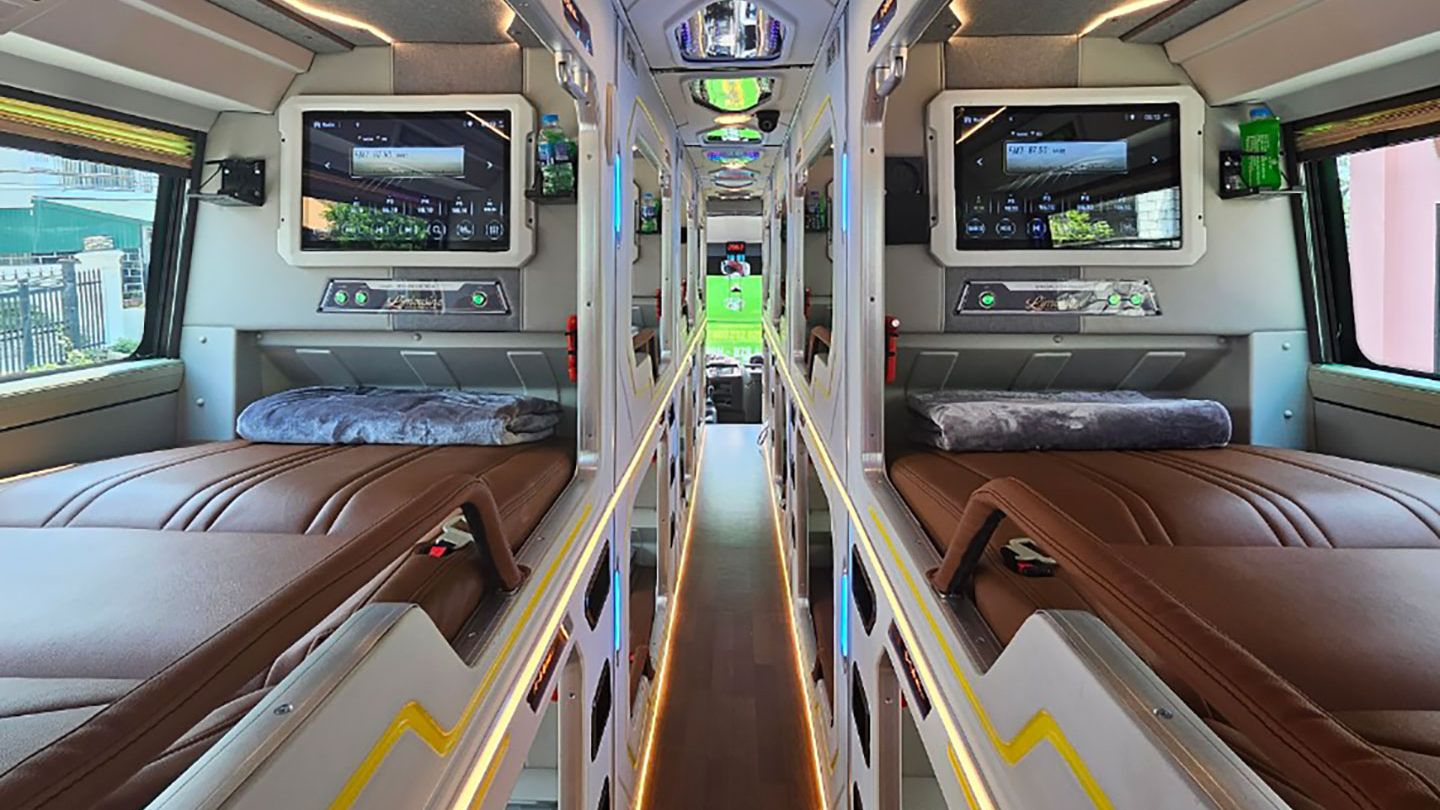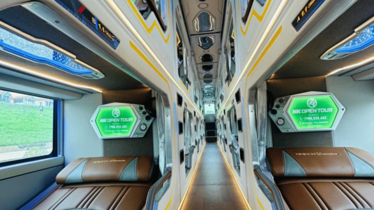 The HK Sapa Open Tour Bus offers a unique cabin setup to ensure a comfortable ride. The bus has 12 single cabins on the upper deck and 12 double cabins on the lower deck, arranged in 6 rows on each level. Each row has two cabins facing each other. All cabins come with windows and curtains, so passengers can enjoy the beautiful scenery along the way.