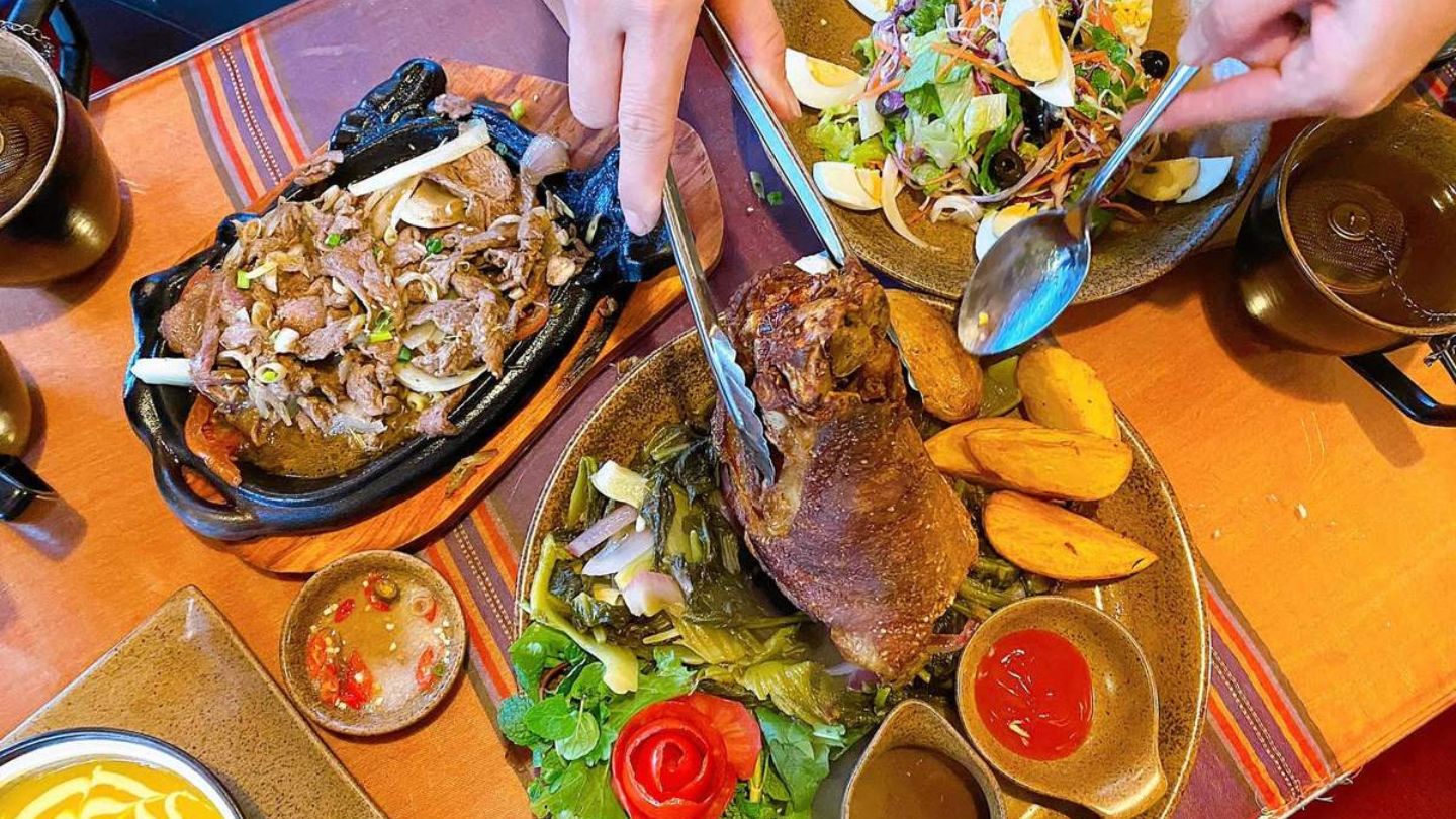 They serve Vietnamese and Asian fusion dishes — mainly grilled meats, seafood, curries, and local specialties cooked with fresh ingredients from Sapa’s farms.
