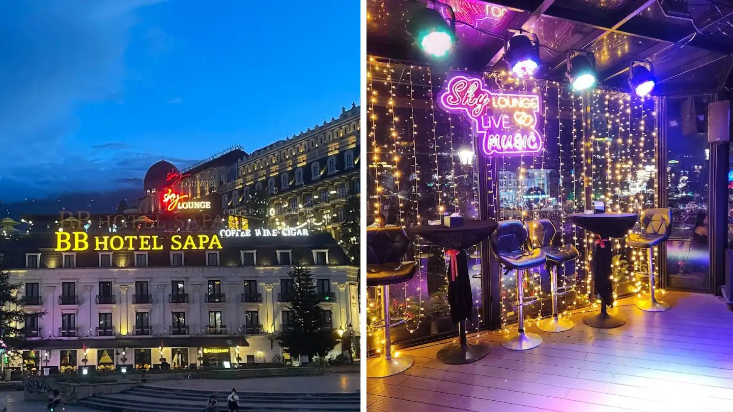 BB Sky Lounge Sapa feels a bit more upscale – it’s part of BB Hotel Sapa Vietnam – but still really welcoming. The interior has that European-style elegance, and with a glass ceiling and all the greenery around, it’s got a lovely garden-party vibe. They often have live music on weekends, and the views of Sapa town from up there are just beautiful at night.