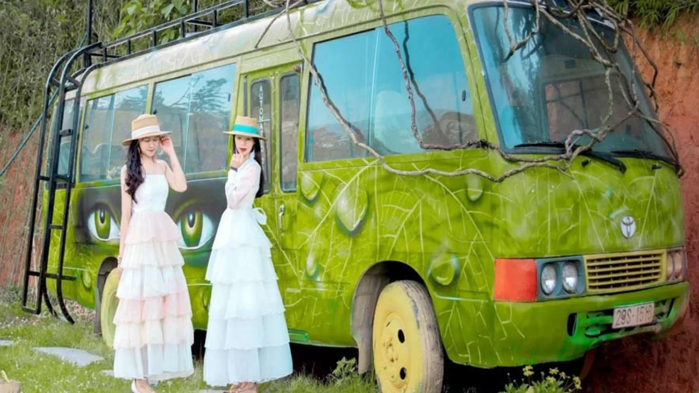 An old bus, painted in bright, eye-catching murals, sits nestled in the garden. Bold flowers, patterns, and vibrant lines cover every inch—perfect for creative, artsy photo ops. Pose inside the doorway, lean against the colorful side, or capture wide shots that showcase both you and the vivid artwork. It’s a playful spot that gives your feed an instant pop of color.