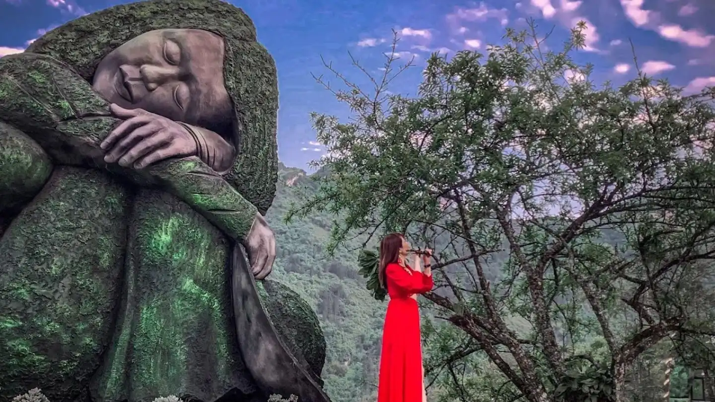 The Mother Nature Statue in Green Valley, Sapa, is a breathtaking sculpture carved into a mountainside, depicting a serene woman resting with her arms crossed and eyes closed. Covered in moss-like textures, the statue blends harmoniously with the surrounding landscape, symbolizing peace, nurturing, and the embrace of nature. Its grand scale and gentle expression create a spiritual, calming presence. With the misty mountains and sky as its backdrop, this statue offers a perfect photo spot and a moment of reflection for those seeking a connection to nature.