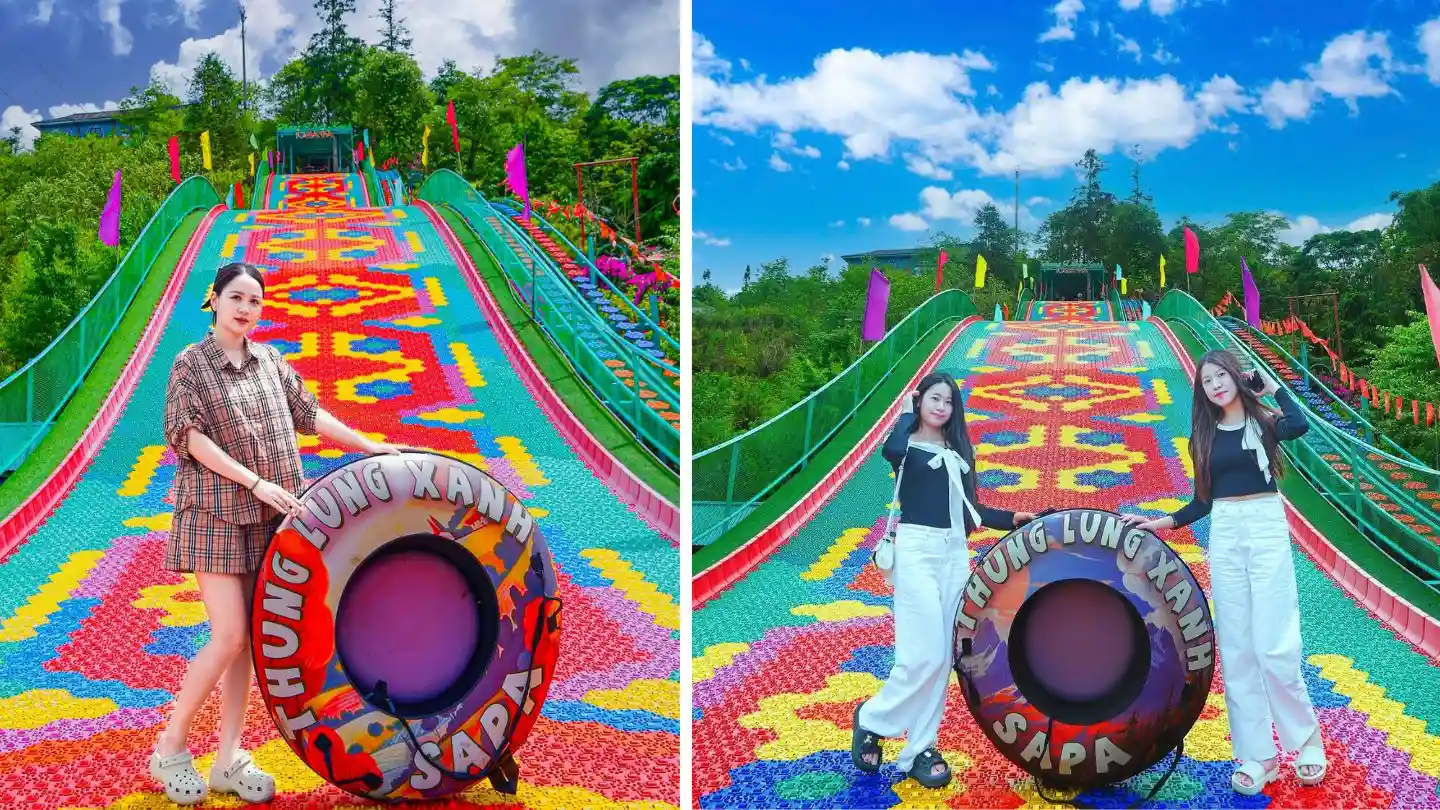 The Rainbow Slide at Sapa Green Valley is a super fun ride that brings out the kid in everyone! You sit on a little sled and zoom down a long, winding track painted in bright rainbow colors. As you glide down the hill, the wind rushes by and the colors blur together – it’s exciting and makes for amazing photos too. It’s not too scary, just the right mix of fun and thrill for friends, families, or couples. Definitely one of the highlights of the valley!