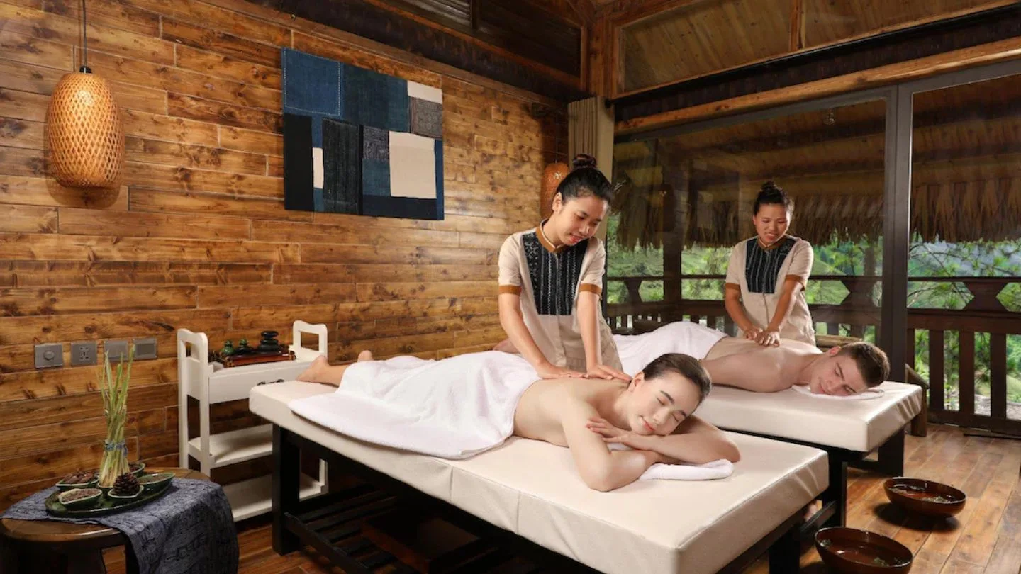 Yes, the resort features a spa offering a range of treatments, including hot stone massages, Dao herbal baths, and acupuncture, all set against the backdrop of Muong Hoa Valley.