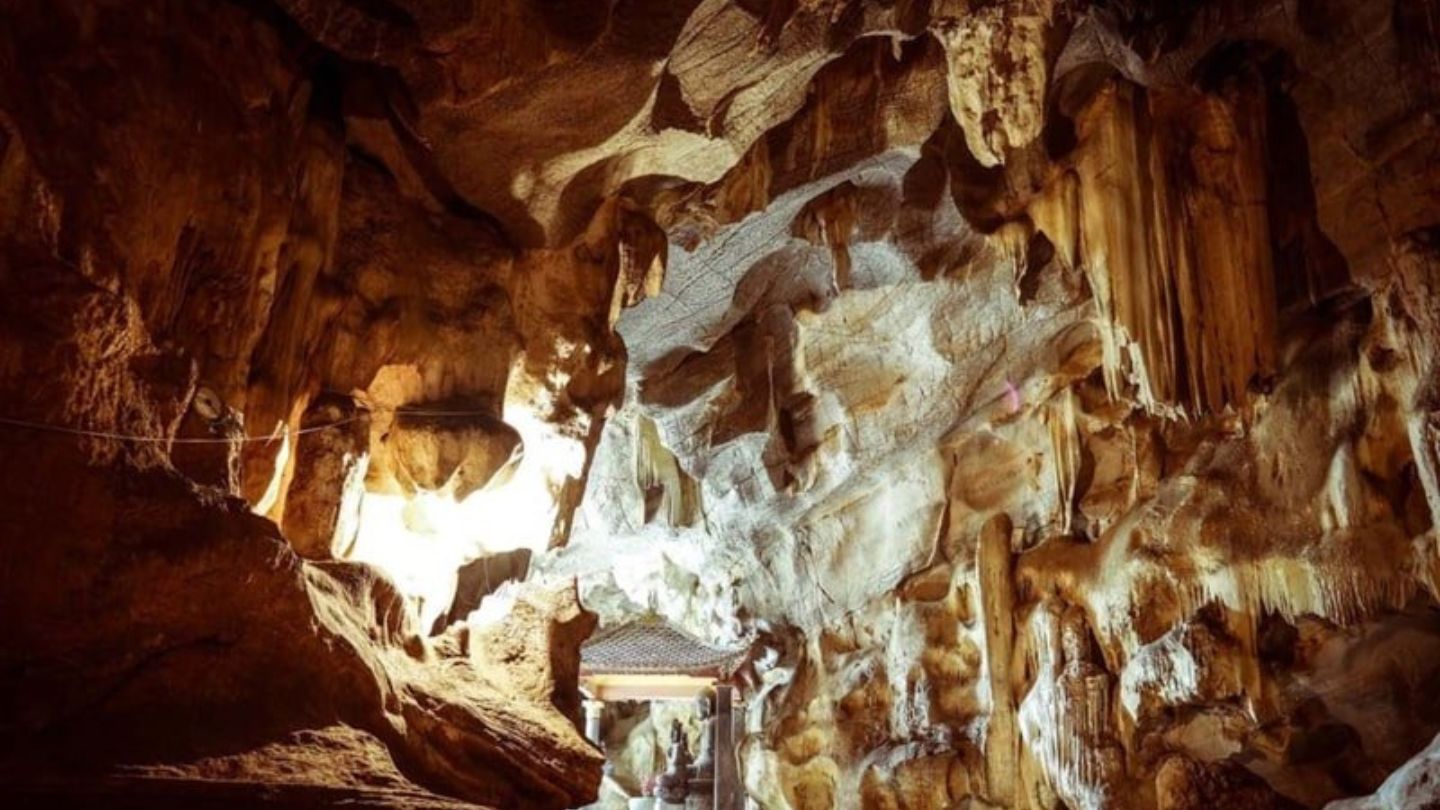 On your way from the Ngo Dong Tam Coc River to Thai Vi Temple, you’ll find Thien Huong Cave. This charming dry cave is about 15 meters above ground and is well-lit, making it easy to explore. It measures 20 meters wide, 40 meters deep, and approximately 60 meters high. Inside, there’s an altar dedicated to Tran Thi Dung, the wife of Emperor Ly Hue Tong.