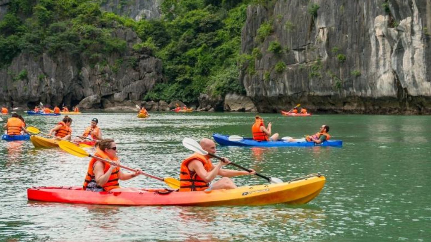 No matter how you like to travel, make sure to jump off the cruise for an afternoon of kayaking around the karsts. Kayaks are perfect for getting up close to the stunning limestone formations. The calm water makes it safe and fun to paddle through caves, islands, and floating villages.Â